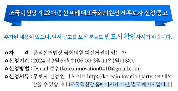 조국혁신당 - 비례대표 후보접수 안내